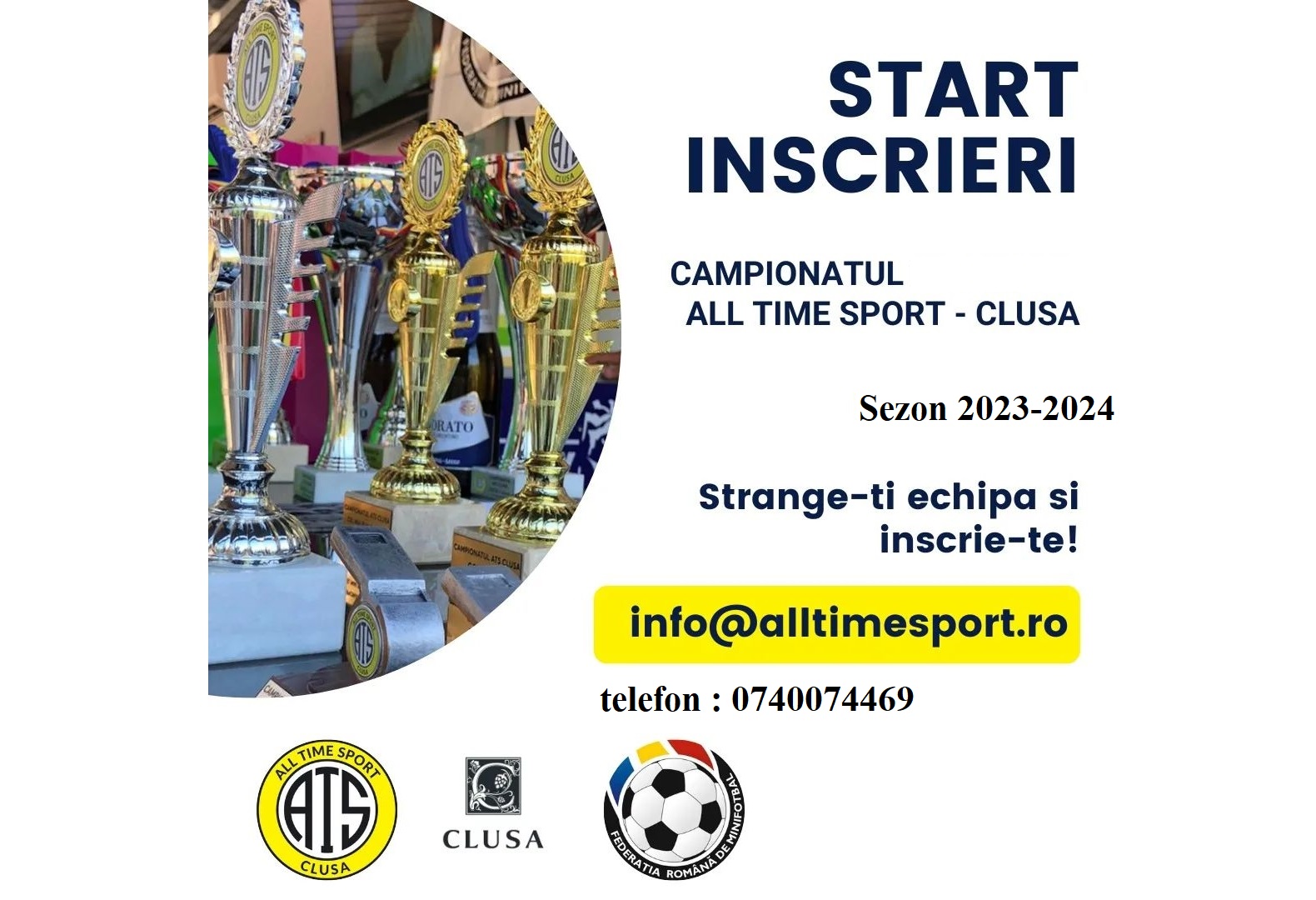 Incepand de astazi va puteti inscrie in Campionatul ATS-CLUSA Editia 2023-2024 Cluj-Napoca. Detalii la telefon +40740074469.